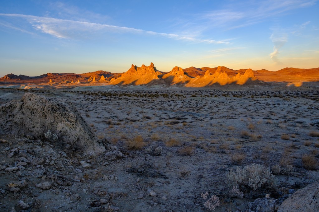 If you drive 2.5 hours south of Bishop, you can camp amid the Trona Pinnacles. These are tufa (calcium carbonate) formations from an ancient lake. They were featured in a Star Trek episode.