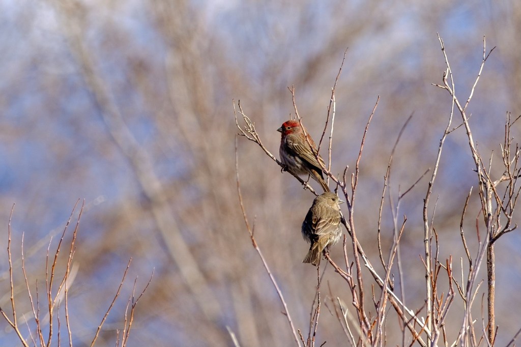 I mistake House Finches for sparrows, but the red color and fat beaks make them easy to identify in photos.