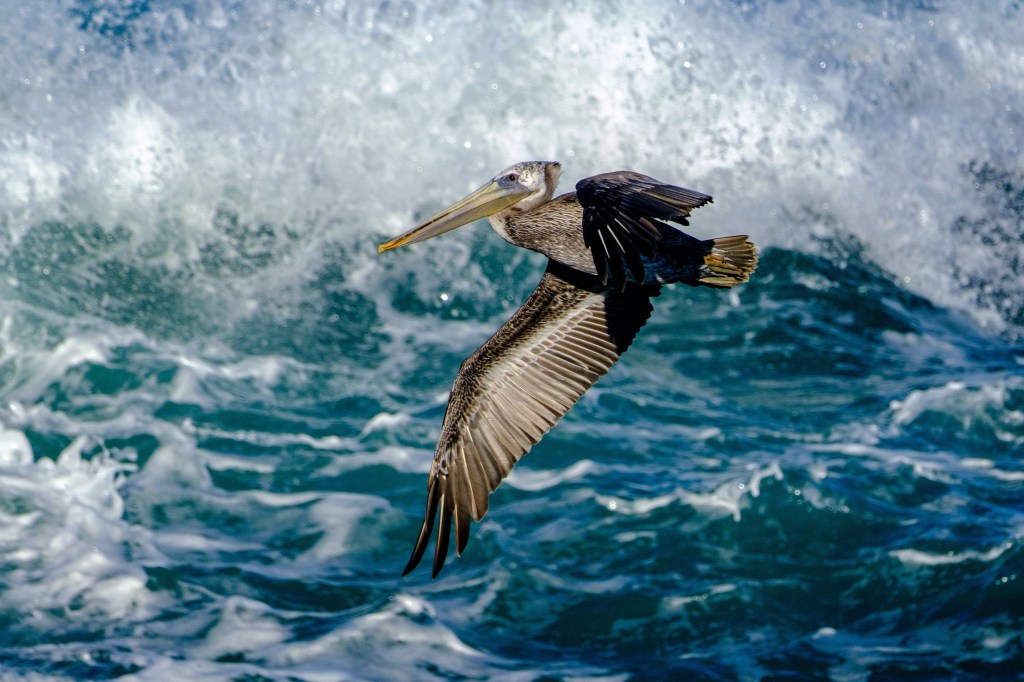 Brown Pelicans are easy to photograph because they are big and they fly in predictable lines.