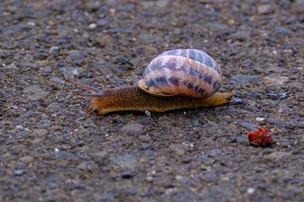 Roberta and I visit Fort Bragg about once a year. Recently Fort Bragg built the Noyo Headlands trail on the bluffs between the ocean and a defunct lumber mill. Snails cross this trail.