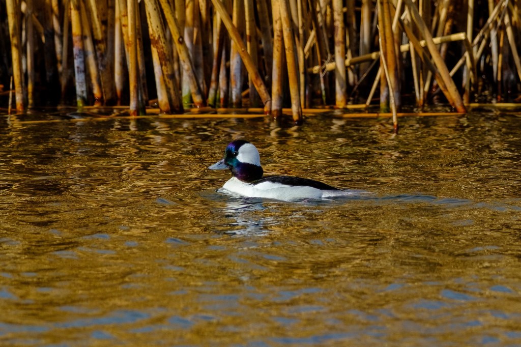 Buffleheads are easy to identify; the male below was in breeding plumage at the Buckley Ponds in March.