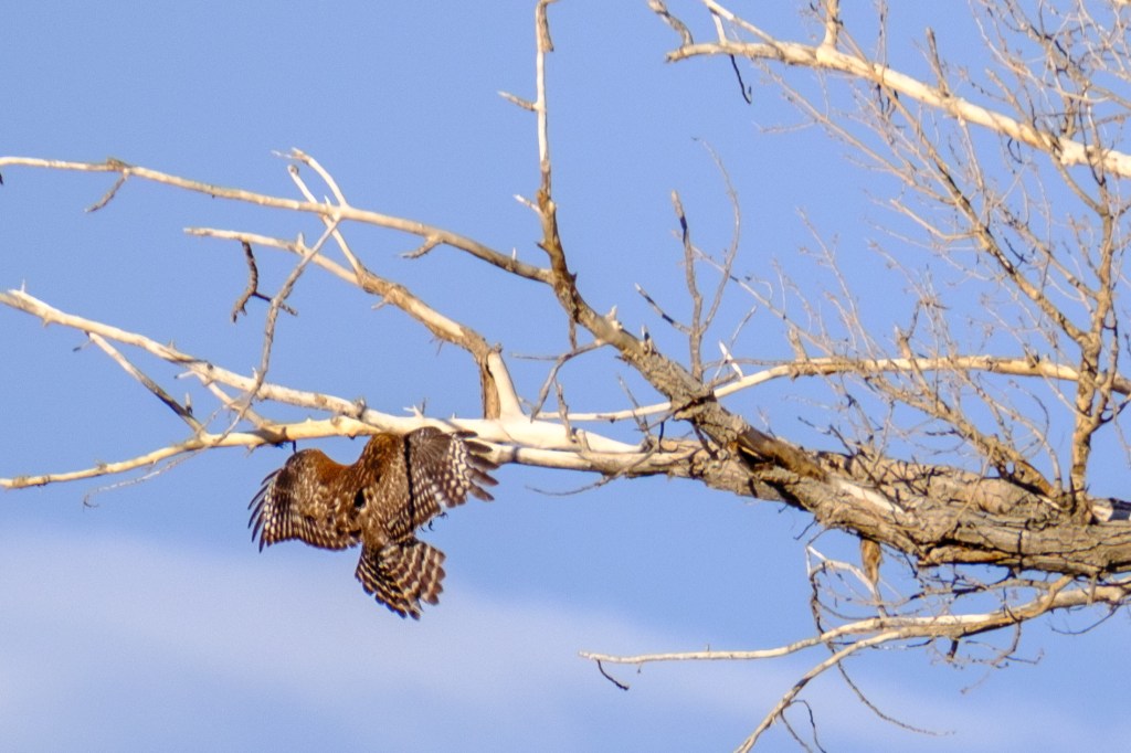 On Barlow Lane, one Hawk takes off while its mate looks on.