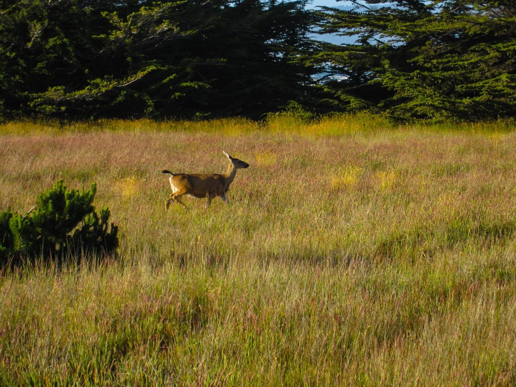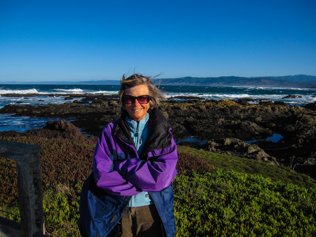 Roberta and I walk paths on the coastal bluffs. To the north of town is an old logging haul road that leads to Mackerricher State Park. To the south is Mendocino Headlands State Park. A timber mill used to occupy the scenic land between Fort Bragg and the ocean. The mill closed in 2002, leaving the bluffs with rusted buildings, waste, and weeds. In the last few years the town cleaned up some of this land and built the Noyo Headlands Park, which provides gorgeous walks overlooking the Pacific. The new trails have benches and signs that describe the area’s history and wildlife. The coast is alive with wildlife; birds, deer, rodents, seals, Grey whales, shellfish, etc.