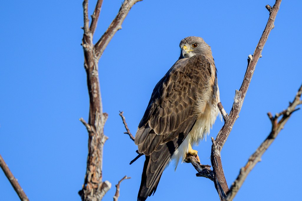 Roberta and I spotted 4 hawks that were flying close to each other near Warm Springs Road. They had white rumps and at first we thought they were Northern Harriers. But as we got closer, we realized these were something else. Later, looking at the photos, I decided they were Swainson’s Hawks. The first two photos below show a juvenile Swainson’s; the third photo shows a mature bird. These pictures were taken from the car. These hawks winter in locations from Mexico to Argentina. They come here to breed. They are not common here and I was happy to get photos with so much detail.