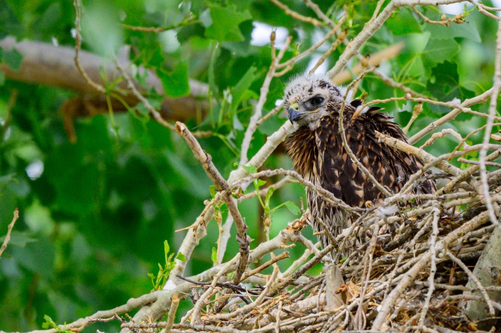 Red-tailed Hawks have a nest on Warm Springs Road. I managed to find two babies for pictures. They have already been banded.