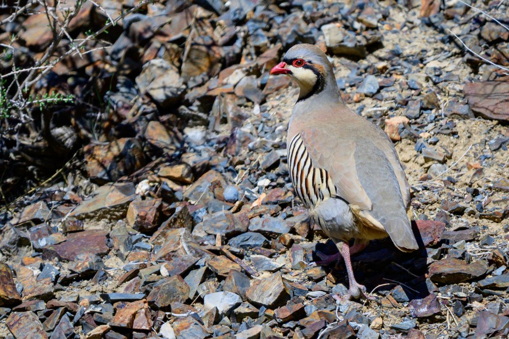 Chukars were introduced from areas that are now part of Pakistan. Like the Ring-necked Pheasant shown earlier, they were brought from Asia and turned loose to be hunted. The Pheasants like the habitat of agricultural fields. Chukars prefer dry rocky slopes. This bird was in Mazourka Canyon in the White Mountains. I got out of the car to get this picture. The Chukar did what they usually do. It ran off uphill.