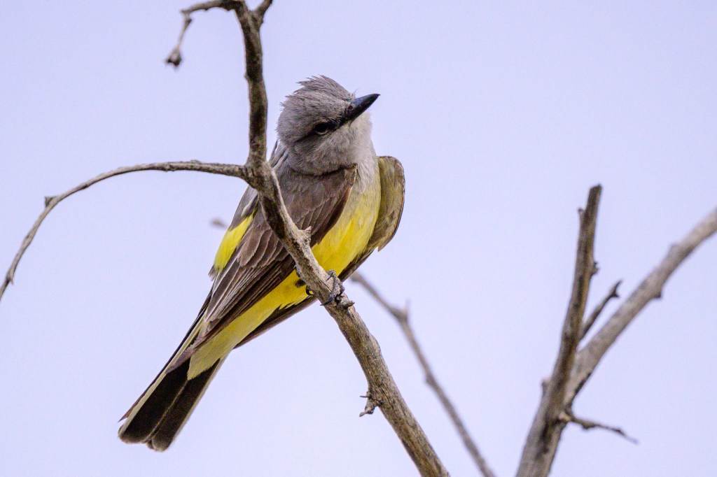 Roberta spotted a Western Kingbird in a tree next to Ed Powers Road. The bird kept flying out to grab something in the air, then perching again.