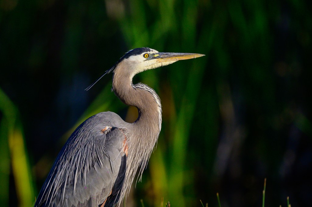 A Savannah Sparrow perches on a reed. As a photographer, I am particularly fond of this photo, showing this tiny bird posed against a green background of new reeds.