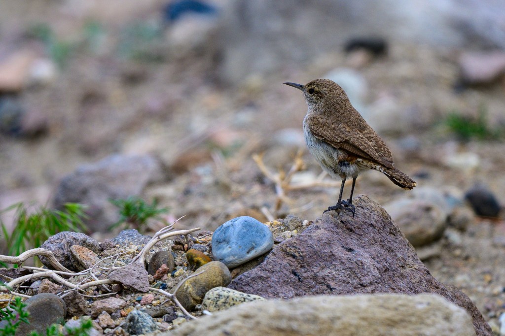 Rock Wrens are common along the Reservoir road. In the second picture, the Wren picks up a fly.