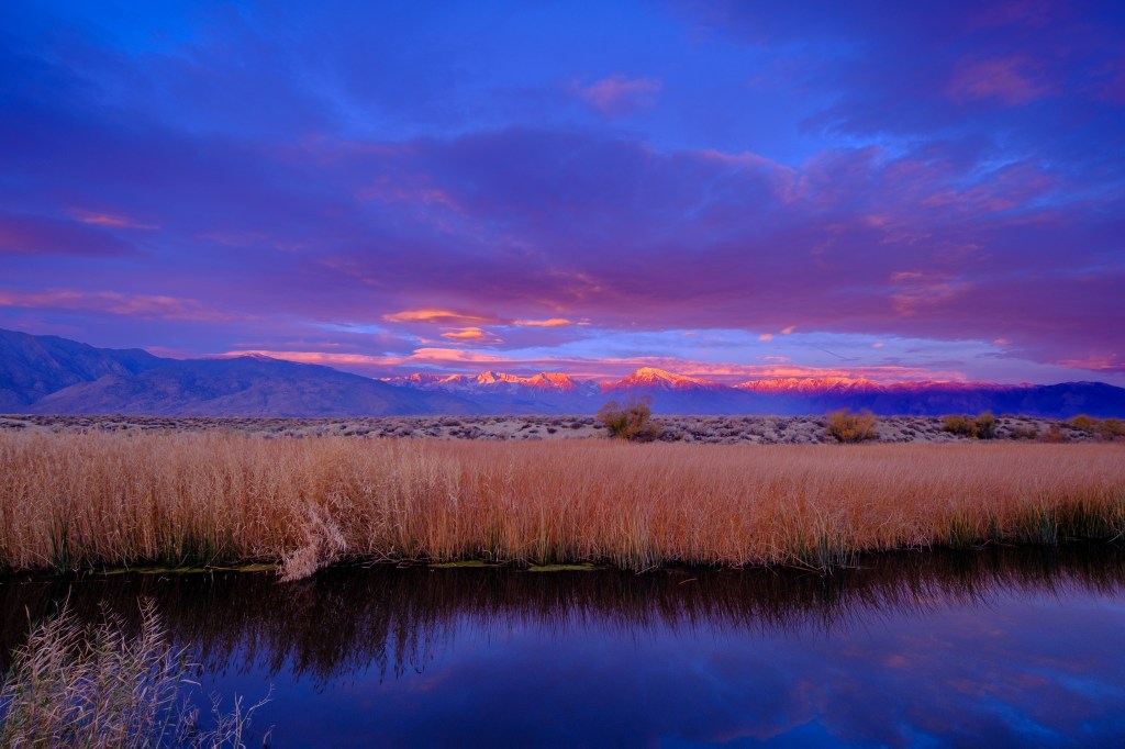 The next two images were taken using a wide-angle lens. I was just a little north of the Ponds on the Rawson Canal. Humphreys is visible, but the foreground and the sky dominate the pictures.